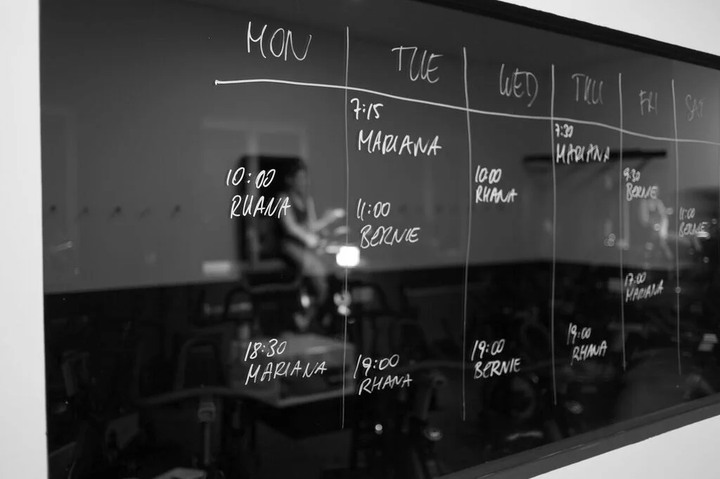 Wir mussten 15 min, bevor wir mit unserer Trainingsstunde angefangen haben, vorher dort sein, da alles genau auf unsere Maße abgestimmt wurde. Also genauer gesagt: das Rad wurde an die Körpergröße komplett angepasst.